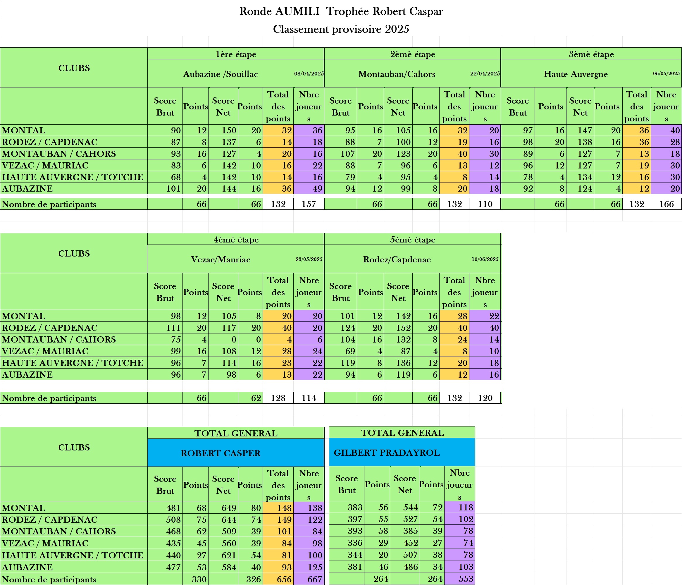 Résultats général fin de saison